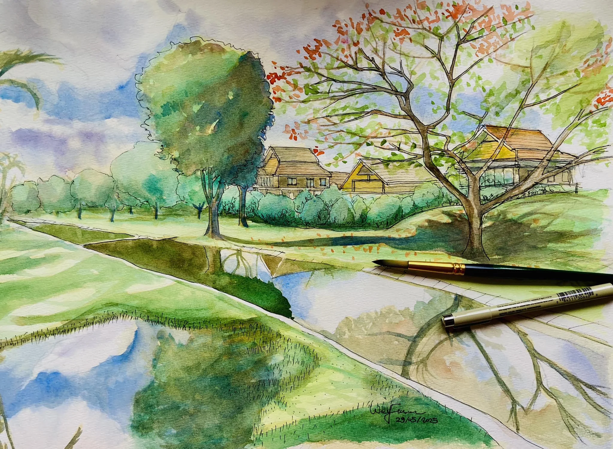 Morning after rain in villageWatercolor on paper37x50cm2025Chiang Mai, ThailandStatus: Available Inquire Inquire