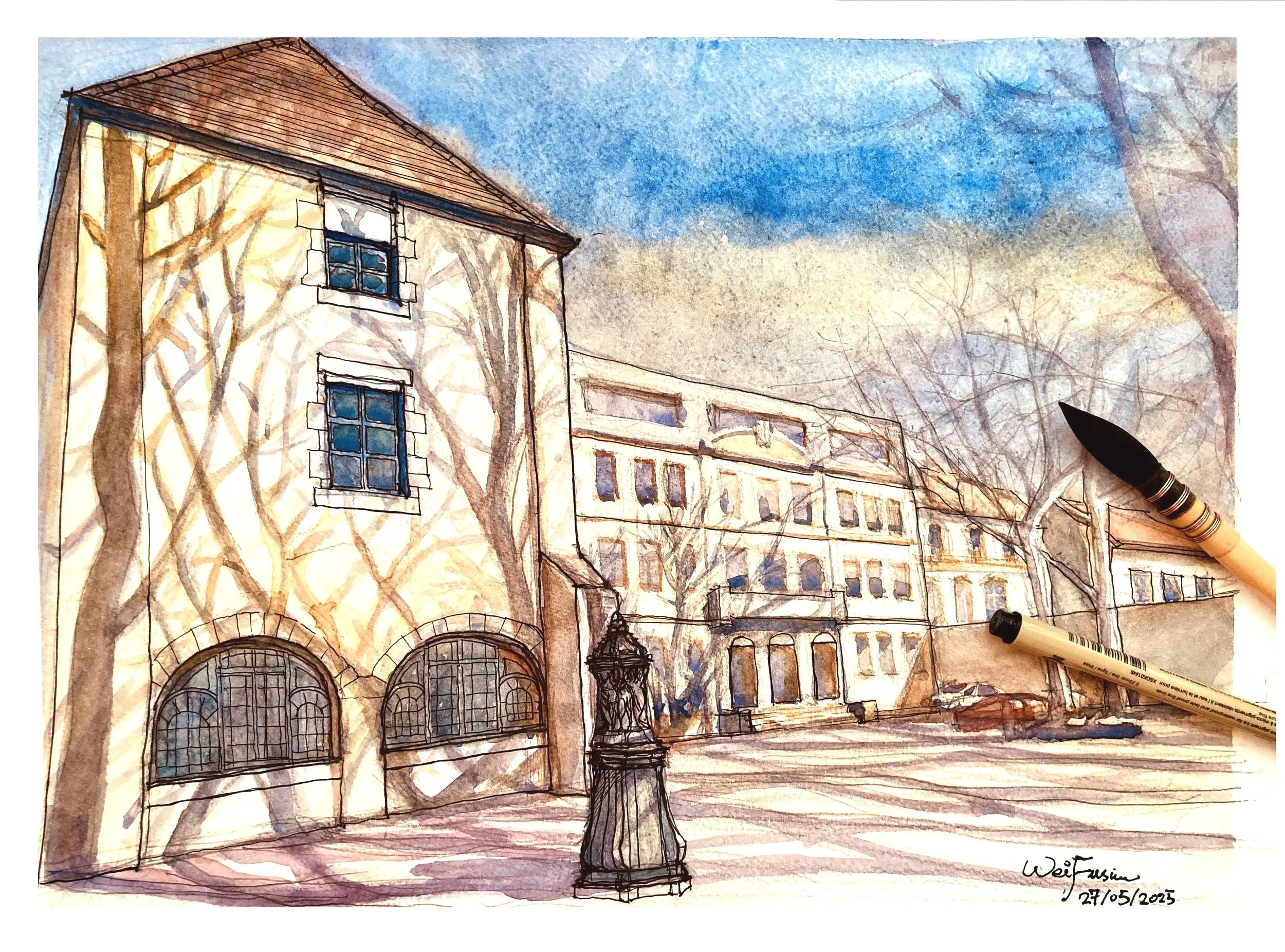 Place Gravelle in BesançonWatercolor on paper32x40cm2025Besançon, FranceStatus: Available Inquire Inquire