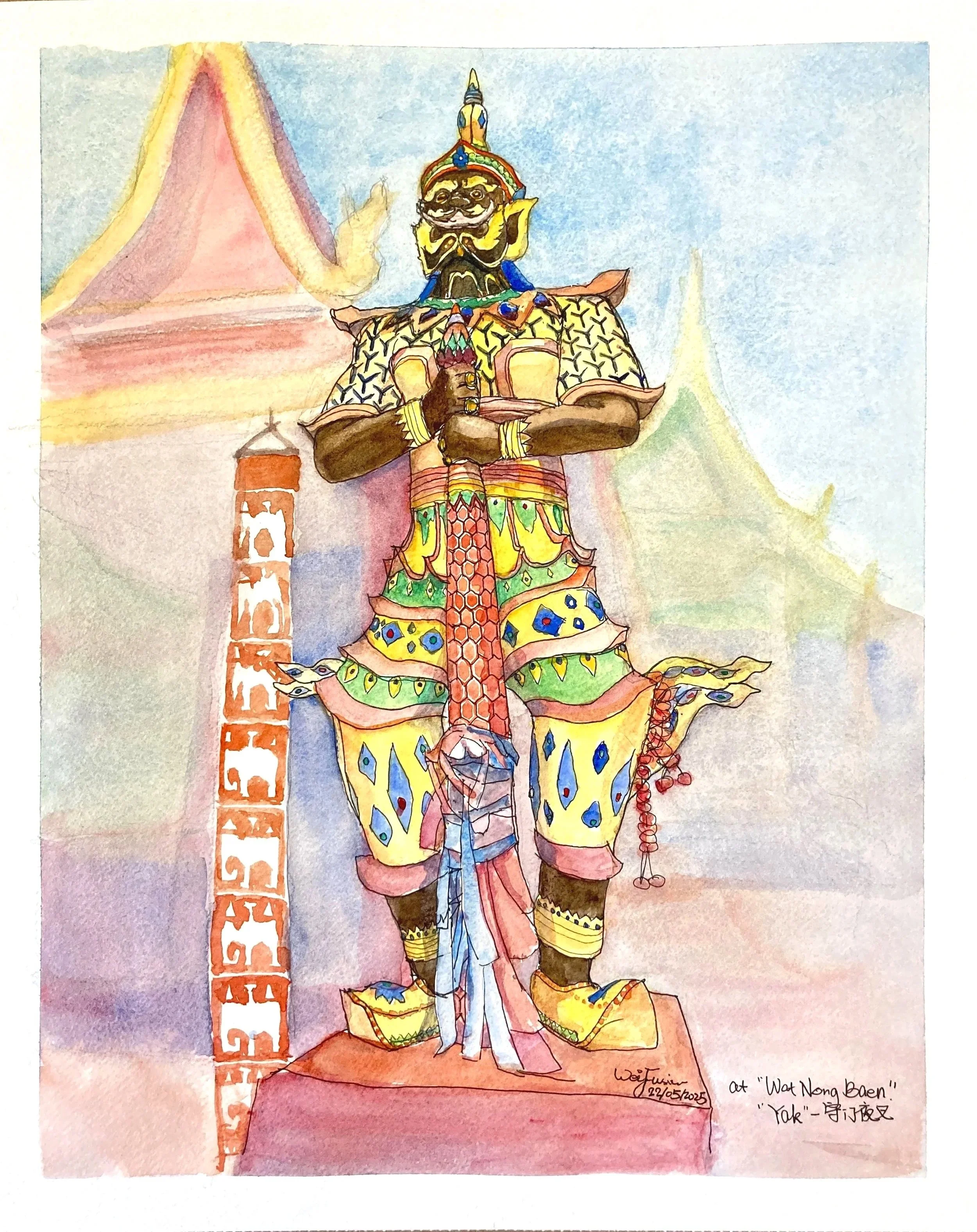 “Yak”(Gardien) in a templeWatercolor on paper30x40cm2025Chiang Mai, ThailandStatus: Available Inquire Inquire